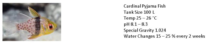 Consider tank size and compatibility:Different species have different needs. For example, Pajama Cardinalfish can live alone in a 10-gallon tank, while other fish require larger spaces and specific tank mates.